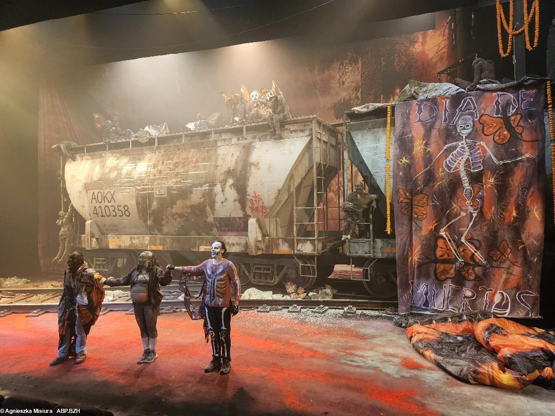 La reconstitution grandeur nature de la Bestia — ce train de marchandises que des milliers de migrants empruntent au péril de leur vie — constitue indéniablement le point fort du spectacle. Massif, rouillé, omniprésent, le convoi impose une esthétique brute qui pourrait suffire à porter un récit puissant. Mais cette force visuelle se heurte à une écriture qui peine à trouver sa cohérence.