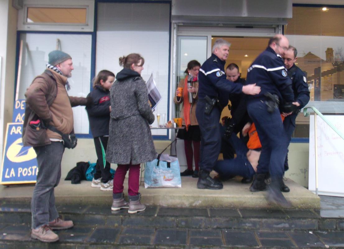 « Bienvenue – Degemer mat » Setu petra a zo skrivet war jiletennoù implijidi ti-post Karaez, e-lec'h ma kaver ivez panelloù en div yezh abaoe un toullad mizioù bremañ. N'eo ket ken c'hwek an degemer e ti-post Bear avat : ar renerez n'he deus ket plijet dezhi an oberenn kizidikaat ar pratikoù graet disadorn gant hor strollad, ha nac'het he deus groñs komz ganimp, ha galvet an archerien. Un nebeut stourmerien deus Ai'ta ! az eas en o c'hoazez neuze war leur an ti-post. Derc'hel penn a reas ar renerez ha goulenn gant an archerien skarzhañ anezhe dre heg, a-raok serriñ ar stal. Ar strollad Ai'ta ! a fell dezhañ diskuliañ seurt doareoù d'ober ha goulenn a ra groñs digant renerezh Ar Post talvoudekaat ar brezhoneg e Bear, evel he deus kroget d'ober e Karaez.