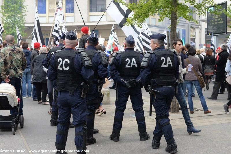 - Nantes, 19 avril 2014, manifestation. Le parcours est "sécurisé" par les CRS.