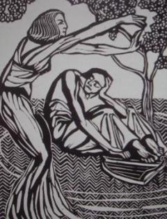 « Ur bugel e oan c'hoazh pa oan aet kuit war vor, asambles gant Gwennin he blev ruz, ur gaer a blac'h. Diouganet e oa bet deomp gant ar sorserezh e chomfemp bev daoust d'ar gwall-amzer, d'al laeron-vor ha d'ar Franked. »