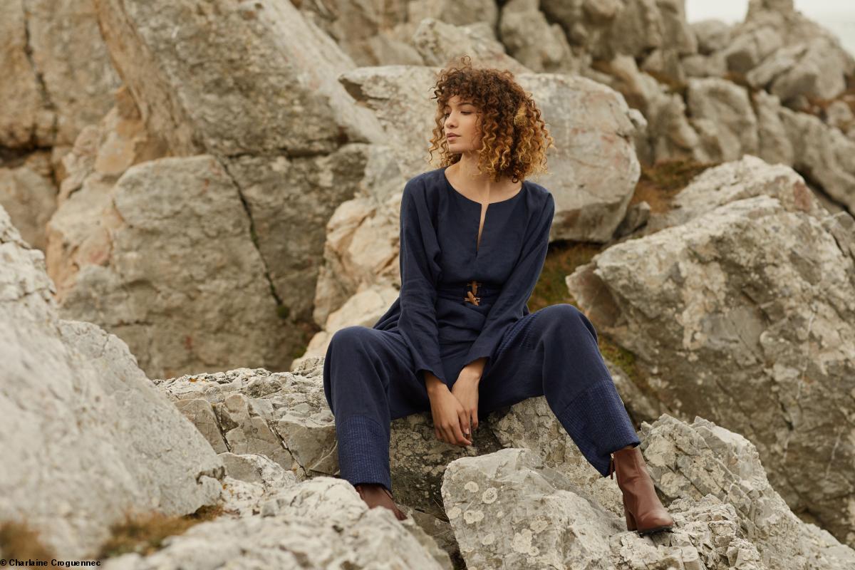 Elle a décidé de s’installer en Bretagne pour créer une ligne de vêtements élégante et fonctionnelle qui reflète l’âme et l’identité de la Bretagne.