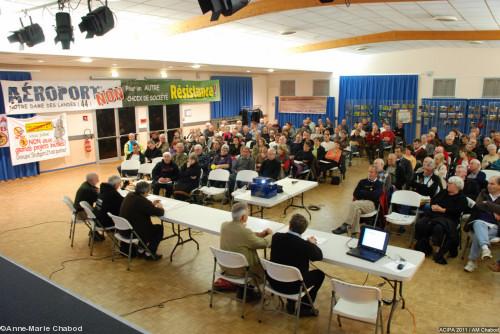 La salle Jacques Prévert de Grandchamp des Fontaines était comble vendredi 25 novembre pour l'Assemblée Générale annuelle de l'ACIPA. Ce qui était pressenti en 2010 s'est confirmé et la mobilisation ne faiblit pas contre ce projet insensé.