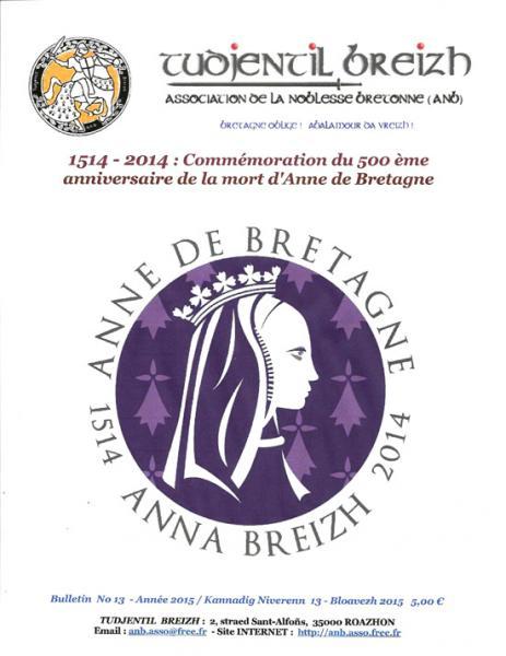 Un après l'achèvement de l'année « Anne de Bretagne », Tudjentil Breizh (co-fondateur du Comité Anne de Bretagne 2014), vient de consacrer son bulletin 2015 à la commémoration du 500e anniversaire de la mort de la dernière souveraine régnante du Duché de Bretagne.