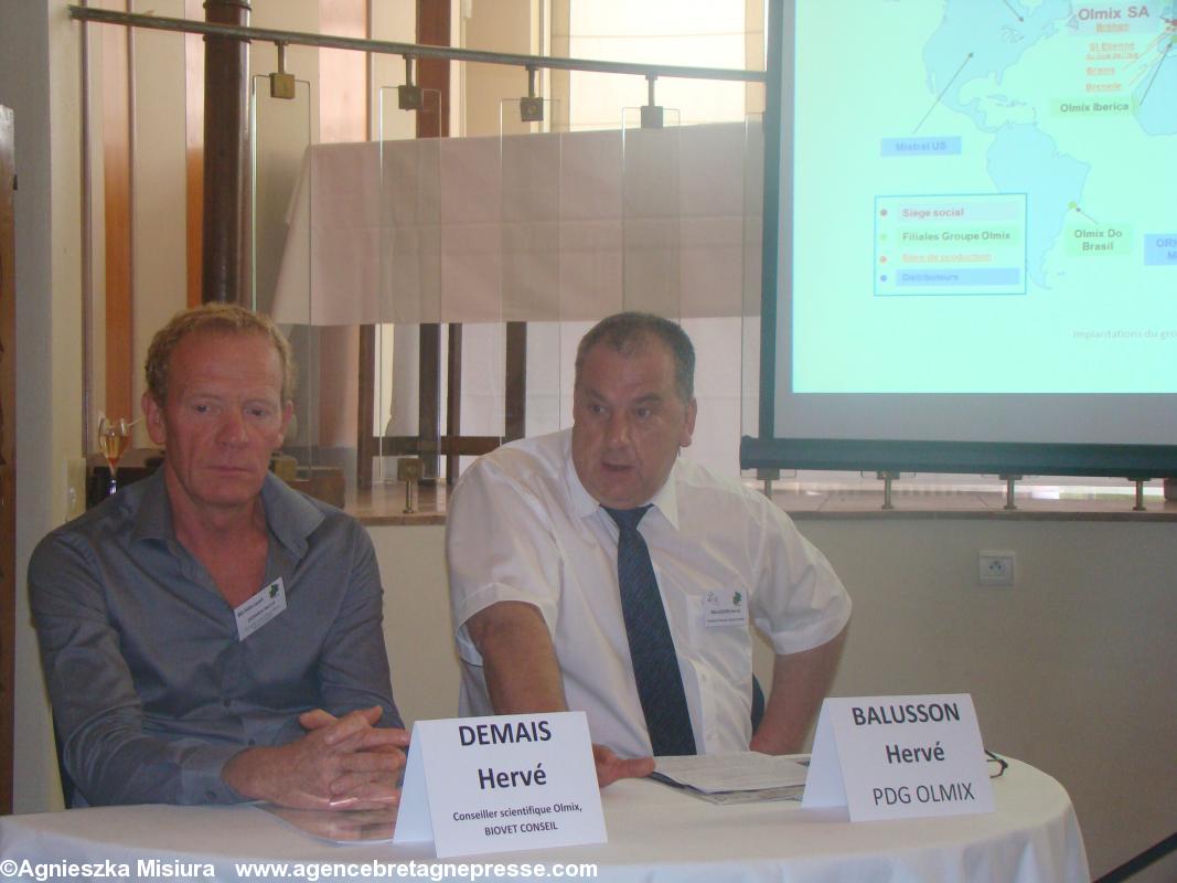Olmix, http://www.olmix.com/fr, est une société créée en 1995 par Hervé Balusson, ayant son siège à Bréhan, dans le Morbihan. Pionnière mondiale en chimie verte, cette entreprise a construit sa stratégie sur la nutrition et le bien être à travers la valorisation de ressources naturelles, algues et argiles, en produits à forte valeur ajoutée. A ses débuts, cette PME a produit de la nourriture pour animaux à base d'argiles. Sur conseil d'Hervé Demays, qui est devenu directeur scientifique, la société décide d'y ajouter des algues vertes. Ce fut une vraie révolution! Grâce aux oligoéléments contenus dans les algues, la santé des animaux s'est beaucoup améliorée et il fut possible de supprimer les antibiotiques.