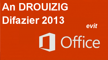 L'équipe d'An Drouizig est heureuse de vous annoncer en ce début d'année 2013 la mise à jour de son correcteur An Drouizig Difazier. La principale nouveauté de cette mise à jour est le support de la suite bureautique Microsoft Office 2013, récemment disponible en preview depuis le site de Microsoft, et dont la sortie grand public est prévue pour le premier trimestre 2013.