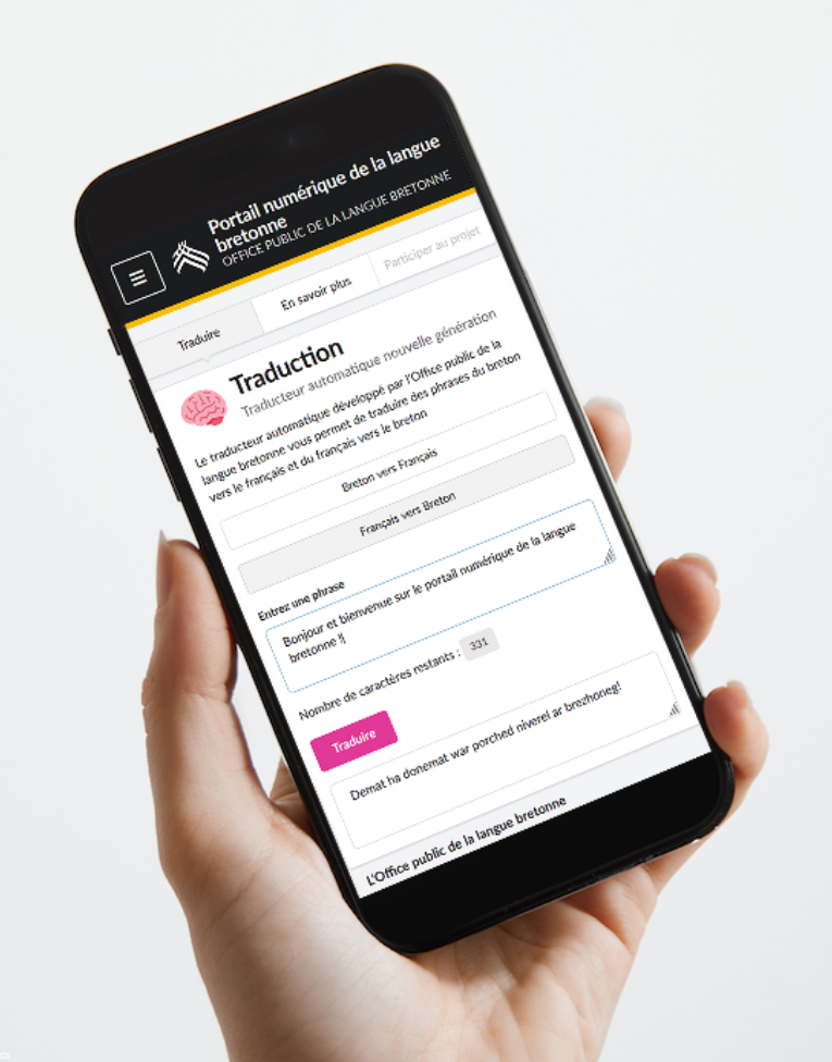 > En 2022, l’OPLB lance le chantier d’un nouveau traducteur automatique plus performant, après un premier projet lancé en 2009 à partir du système Open Source « Apertium ». Le traducteur automatique basé sur l’intelligence artificielle est désormais capable de traduire à la fois dans les sens breton-français et français-breton. Il a été réalisé par Alan Entem, ingénieur IA. Les avancées techniques permettent aujourd’hui de développer des traducteurs automatiques à base de réseaux de neurones entraîné sur des corpus bilingue de taille relativement restreinte (environ 100 000 paires de phrases pour le breton). Les textes produits sont plus naturels et plus précis, et la qualité s’améliore à mesure que le corpus s'enrichit.