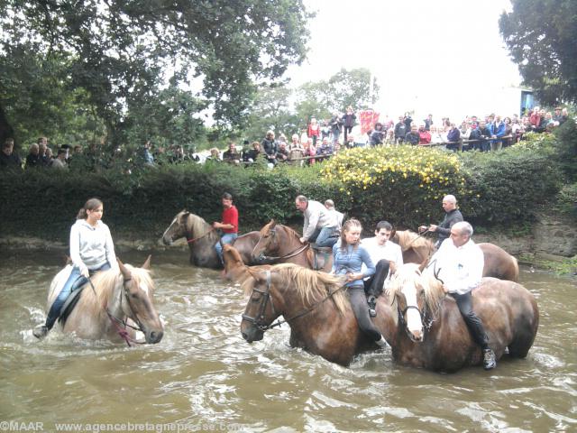 Elle était accompagnée du Rallye d'Avaugour avec les cors de chasse et de calèches pour rejoindre la chapelle pour la messe, la bénédiction des chevaux et la baignade des chevaux.