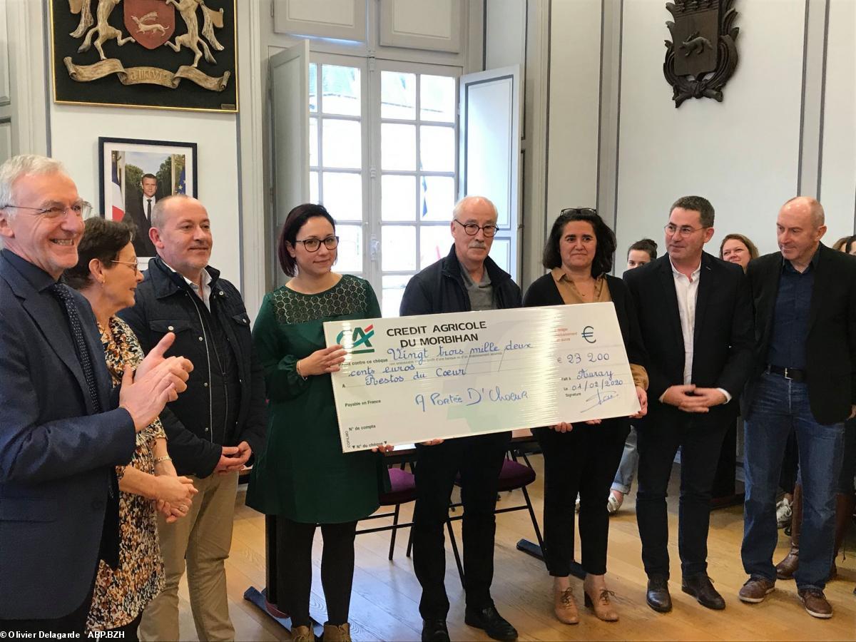 23.200 euros, c’est le montant du chèque que l’association A Portée d’Chœur, plus connue désormais et de manière bien méritée comme les Enfoirés du Morbihan, a remis à la délégation départementale des Restos du Cœur. Fruit d’une année de travail, de conception et de réalisation de leur spectacle au profit des plus démunis. C’est accompagnés de leurs partenaires dans cette aventure, qu’en mairie d’Auray ce samedi, les bénévoles d’A Portée d’chœur ont également été remerciés et récompensés par les maires de la même ville et celle de Pluvigner, siège de l’association.