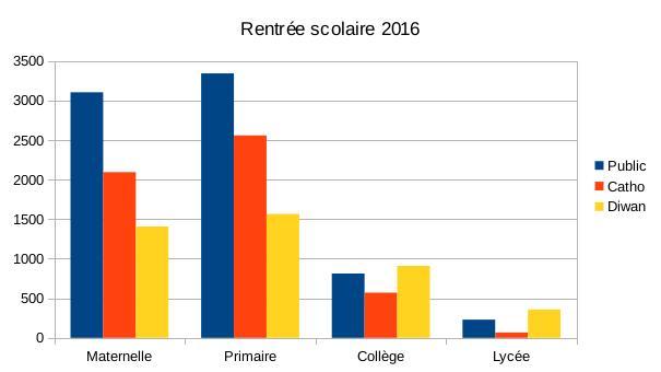 Diwan zo enni 54 skol Diwan kentañ derez, 6 skolaj, ul lise e Karaez, 4 242 skoliad, ur burzhud hag un niver bihan-kenañ war un dro, pa soñjer ez eo 1 % eus ar boblañs skol e Breizh. 250 den o labourat bemdez (kelennerien, skolaerien, ATSEM, 700 kelenner brezhoneg e Breizh. Deuet eo Diwan da vout un embregerezh rannvroel gant ur sez melestradurel e Landerne, hag ur greizenn -stummañ evit ar c’hentañ hag an eil derez e Kemper, « Kelenn ». Abaoe 40 vloaz e chom karta Diwan talvoudus-tre evit kompren diazezoù ar gevredigezh ganet abalamour « da vankoù an Deskadurezh Stad na ro ket e blas d’ar brezhoneg ».
