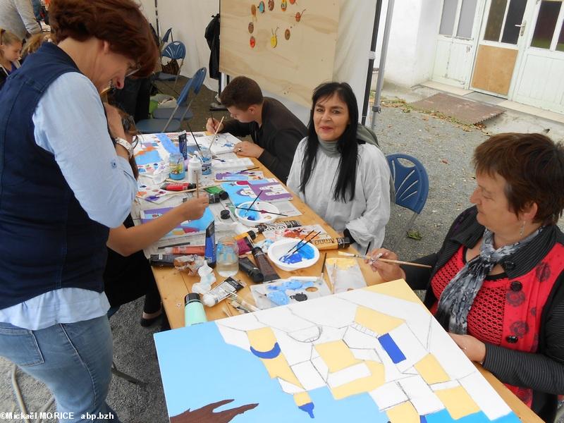 Dans le cadre du programme Européen Erasmus+ et du projet Aristote, Sylvie Le Moël-Philippe et Priscilla Dussart ont animé un atelier peinture sur le thème de la Grèce, samedi 2 Juillet à la Fête de Quartier du Plateau, Saint-Brieuc. Mme Martine Hubert, conseillère municipale de Saint Brieuc a participé activement.