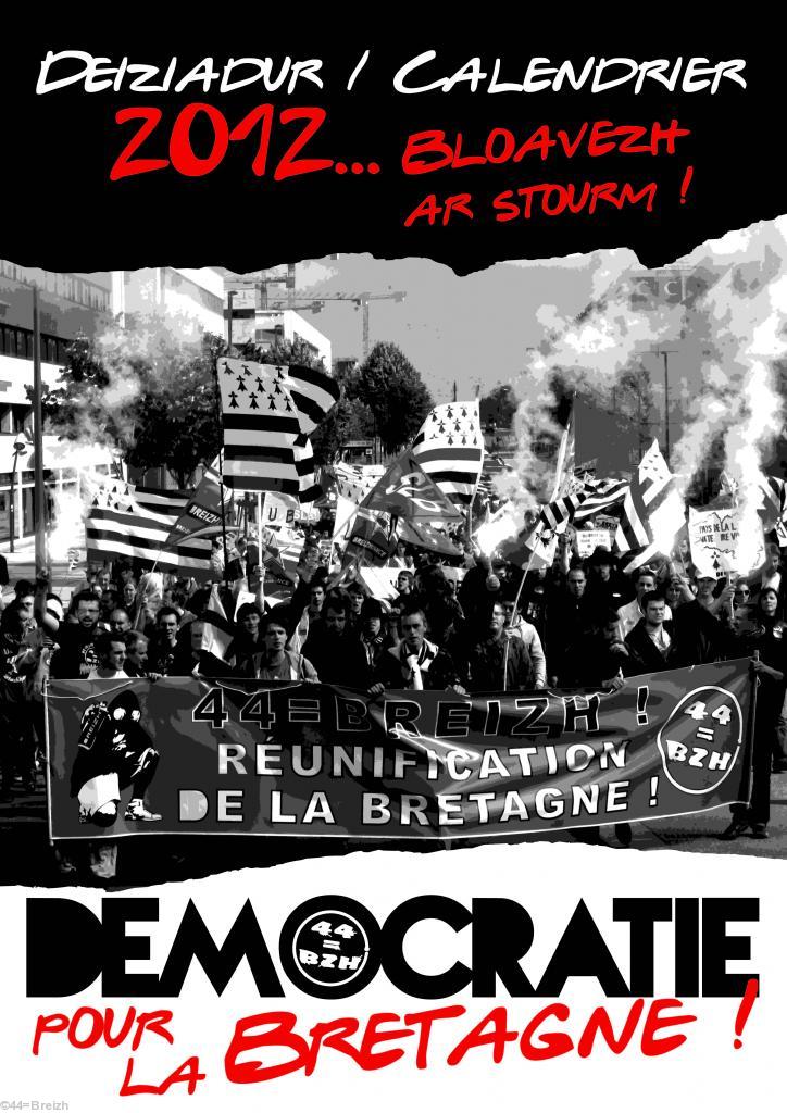 Lidet e vo gant 44=Breizh e bevare deiz ha bloaz e 2012 ! Divizet hon eus neuze sevel un deiziadur gant luc'hskeudennoù an oberennoù aozet ganeomp : manifestadeg “Breizh o stourm”