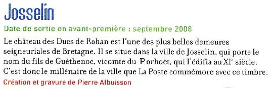 La ville de Josselin fête en 2008 le millénaire de sa création. Plusieurs animations sont prévues. http://www.josselin.com/ de la commune sur lequel les internautes trouveront d'autres informations concernant le Millénaire de Josselin.