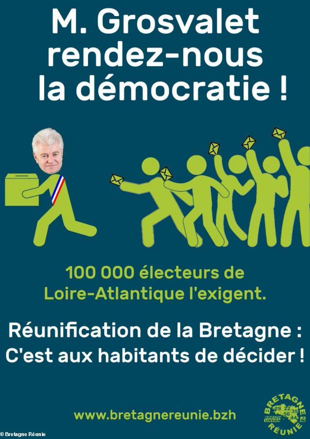 Le sieur Grosvalet, n'ayant pas de mandat impératif, est donc respectueux de la Loi française s'il décide, par son Assemblée de la région des Pays Bidons (de la Loire), de ne pas organiser ni de tenir compte de cette demande. Il fait donc appel au Château et à Sa Majesté, son maître Jupiter.