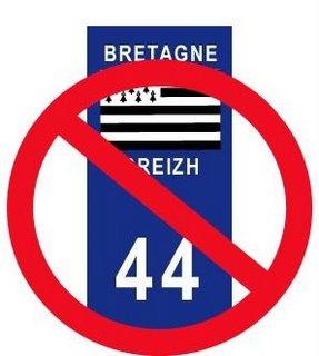 Après avoir rencontré la préfecture régionale des PdL, après des interventions de Bretagne Réunie vers le ministère de l\'Intérieur, alors qu\'on nous présente le « comité Balladur » comme donnant bientôt une réponse à la question de la partition de la Bretagne, nous ne pouvons que nous étonner que l\'État persiste et reste sourd à notre demande de pouvoir choisir le Gwenn ha Du pour les personnes immatriculées en 44. Quel intérêt de maintenir le logo PdL alors que cette région est vouée à prochainement disparaître ? On nous apprend en plus que toute « modification de la plaque est interdite » ! Alors que les pouvoirs publics refusent de répondre à une demande populaire officiellement exprimée, qu\'ils laissent le choix à certaines personnes d\'opter pour n\'importe quel numéro de département, on voudrait nous contraindre, nous, habitants du pays nantais, à ne pas apposer un Gwenn ha Du à la place du logo PdL !