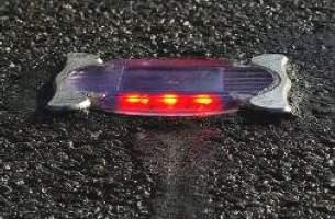 Puis ils se rendront sur le chantier de pose des 1.600 plots lumineux spécialement fabriqués pour cette opération (photo ci- contre) : 5 véhicules de travaux publics effectuent en file indienne les opérations de sciage, fraisage et aspiration de la chaussée, de pose des plots et de rebouchage.