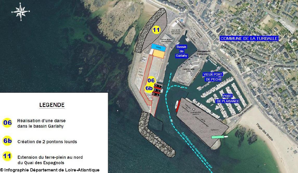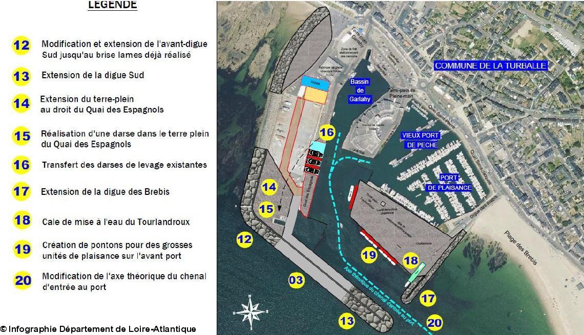 Le Département a engagé en 2015 une étude de faisabilité et d’opportunité d’aménagement qui a pris en compte tous ces aspects en concertation avec les différents acteurs institutionnels : État, Région Pays de la Loire, Cap Atlantique, commune de La Turballe, SAEML Loire-Atlantique Pêche et Plaisance et les usagers de la pêche, plaisance, réparation navale, passagers, éolien offshore, SNSM…