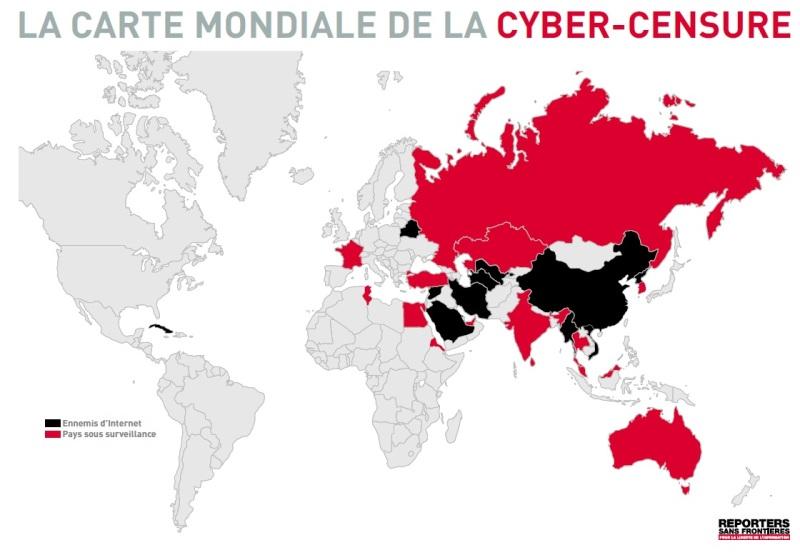 Le rapport met en cause des pays qualifiés d'ennemis d'Internet. Principalement en Asie (Corée du Nord, Chine, Vietnam, Birmanie), dans le monde arabe (Bahrein, Arabie Saoudite, Syrie, Iran), parmi les autocraties d'Asie Centrale (Ouzbékistan, Turkménistan), auxquels s'ajoute sans surprise Cuba et la Bélarussie où le blocus du web craque de partout, notamment à cause de la proximité de la Russie. Et d'autres pays qui s'apprêtent à rejoindre la bande des ennemis jurés de la Toile, notamment la France, ou encore la Russie, l'Inde, la Turquie (qui pourtant veut rejoindre l'Europe et donc se trouvera bien amenée à se mettre en conformité avec le droit européen), Sri Lanka ou encore les Emirats. Et même la Tunisie révolutionnée où les islamistes sont arrivés au pouvoir.