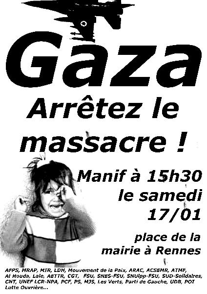 L'Union démocratique bretonne dénonce l'occupation sanglante de la Palestine et le blocus de Gaza, la violation de la Convention de 1980, les bonus diplomatiques et économiques favorisant l'escalade meurtrière israélienne depuis 2006 : rehaussement des accords entre l'Union Européenne et Israël sous la présidence française, augmentation de 45 % des exportations israéliennes vers le Canada en 2008, fourniture d'armes et aide annuelle de 3 milliards de dollars des USA…