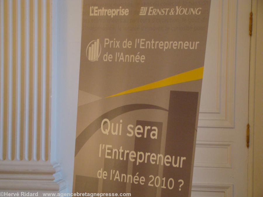 Remise des prix de l'Entrepreneur 2010 sous l'égide de Patrick Rimbert, adjoint au maire en charge de l'Économie et sous la présidence de Jacques Royer du groupe Royer d'Ille-et-Vilaine. La moitié des lauréats sont installés en Bretagne