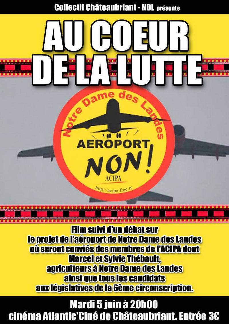 Projection et débat mardi 5 juin à 20 h au cinéma de Châteaubriant. Notre Dame des Landes... au cœur de la lutte.