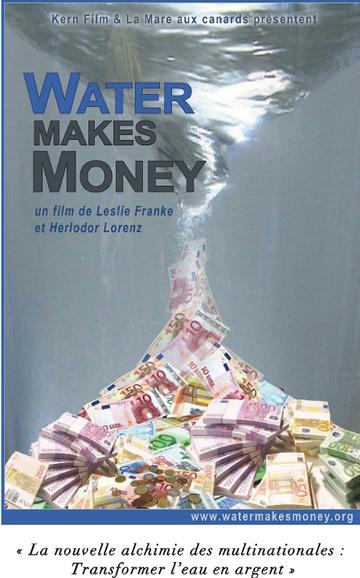 Water Makes Money (L'eau rapporte de l'argent) sera projeté simultanément dans une centaine de villes d'Europe et des États-Unis ce jeudi 23 septembre en première. Il sera ensuite diffusé en 2011 sur Arte. http://www.watermakesmoney.org du film. Durée 82 mn. Sortie DVD prévue pour octobre 2010.