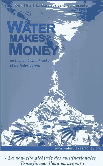 Le film documentaire Water Makes Money ((L'eau rapporte de l'argent) sera projeté simultanément dans une centaine de villes d'Europe et des États-Unis ce jeudi 23 septembre en première. Il sera ensuite diffusé en 2011 sur Arte. Durée 82 mn. Sortie DVD prévue pour octobre 2010.