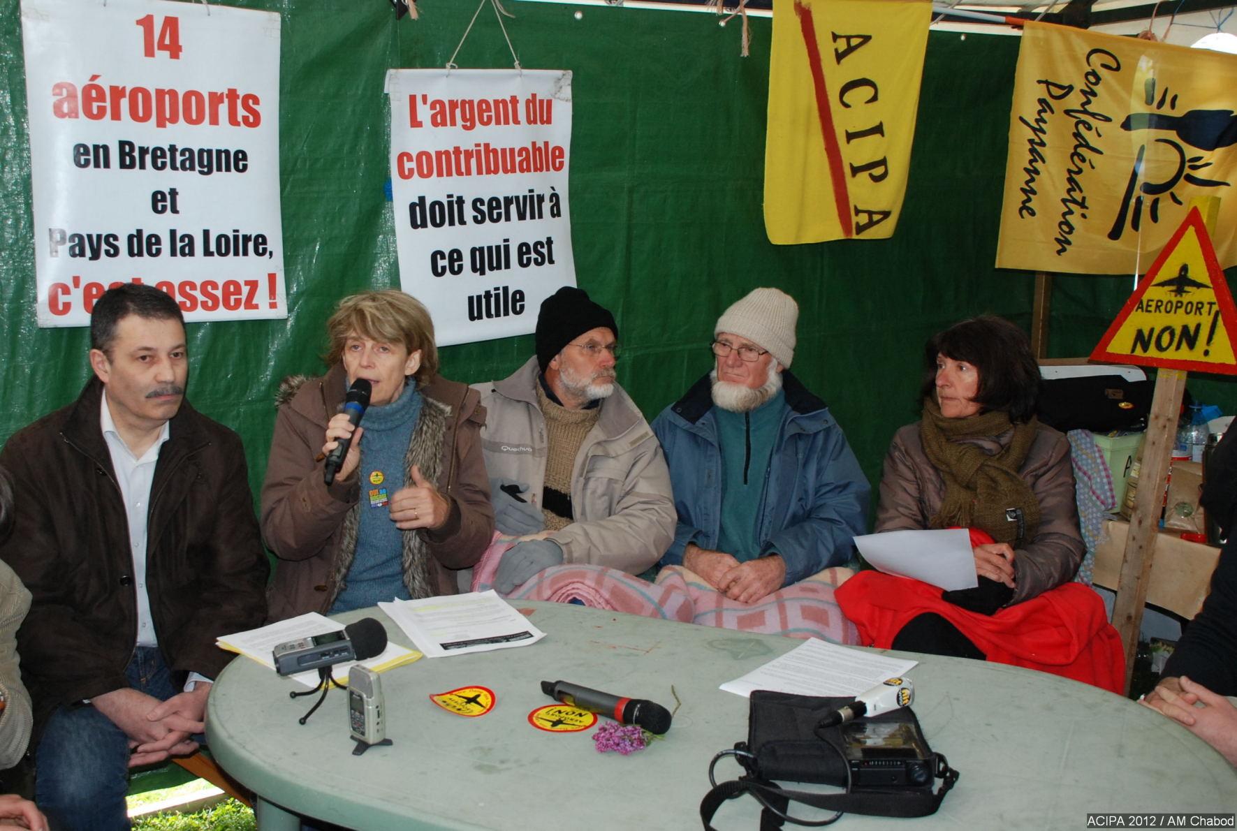 Le collectif Paysans 44 a envoyé un courrier à tous les élus des Régions Bretagne et Pays de la Loire, du Conseil général 44 et de Nantes-Métropole. Par ce courrier, le collectif dénonce le double langage des politiques, d'un côté la posture sur la préservation nécessaire des terres agricoles et de l'autre, les faits : la destruction de 2000 hectares de bocage cultivé au profit d'un projet privé inutile. D'autre part, le collectif d'élus a remis aux trois responsables de ces mêmes collectivités territoriales (hors CR Bretagne) un courrier leur demandant de se positionner sur les mêmes deux points que les candidats à l'élection présidentielle, et les invitant à venir donner leur réponse de vive voix aux grévistes.Un recours juridique du CéDpa (collectif d'élu-e-s)