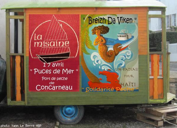 Festivité et solidarité riment sur le terrain maritime, en effet le monde de la course, de la voile traditionnelle et de la pêche partageront un espace sur le quai d'Aiguillon, face à la Ville Close, une occasion d'échange et de convivialité pour les chineurs. L'association La Misaine organise à Concarneau, devant la Ville Close des "Puces de mer" au profit de l'association "Solidarité Pêche - un bateau pour Haïti". Le samedi 17 avril, veille du départ de l'AG2R - La Mondiale, la transatlantique Concarneau/Saint-Barth. Une affiche offerte par l'artiste Anh Gloux sera vendue au profit de "Solidarité Pêche". Un rassemblement de misainiers est prévu devant la Ville-Close. Venez acheter ou vendre des livres, des bibelots, de l'accastillage, pourvu que l'esprit maritime vous anime. De 9 h à 18 h sur le quai, entre la ville Close et le ponton des côtiers.Contact et inscription des exposants, Yann Le Berre :