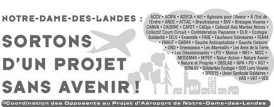 Signé la Coordination des opposants au projet de Notre Dame des Landes : plus de 50 groupes (associations, syndicats et mouvements politiques) (http://acipa-ndl.us9.list-manage.com/track/click?u=bd220ad52af99fb63d06b11d0&id=7070621a1b&e=39788270d9 de l'ACIPA pour la liste des groupes.)