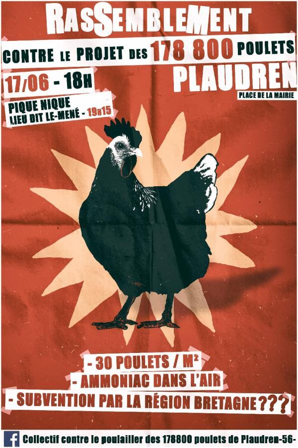 Or, ce projet est non seulement accepté par l’Etat, mais il est également favorisé par Loïg Chesnais-Girard et la Région Bretagne. Le plan volailles de la Région prévoit en effet de verser 50 000 € de subventions à 100 projets de ce type en Bretagne. C’est pourquoi nous avons choisi cette date du 17 juin, jour de mobilisation contre la réintoxication du monde pour dire qu’il faut stopper ces projets néfastes et engager une véritable transition vers des modes de production plus vertueux. La réglementation et les subventions publiques doivent être dirigées uniquement dans ce sens.