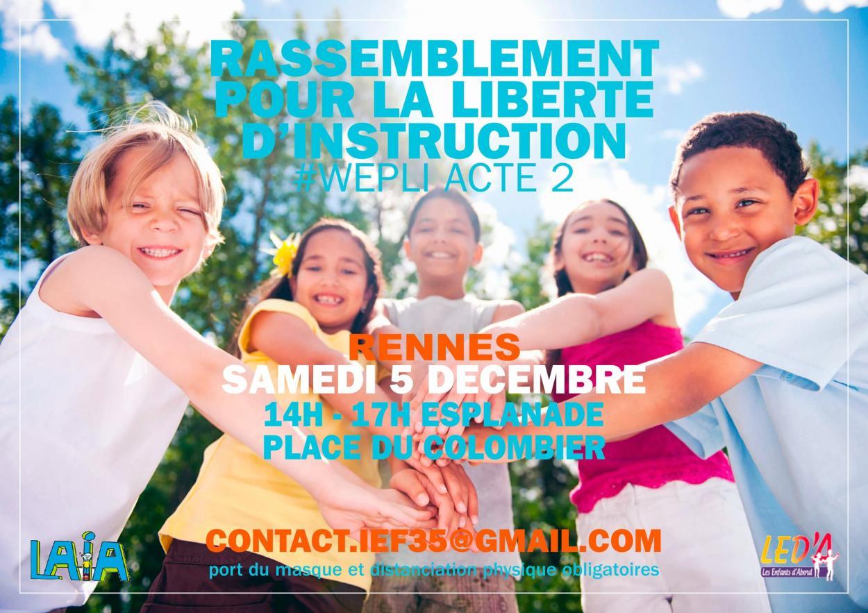 RASSEMBLEMENT POUR LA LIBERTÉ DE L’INSTRUCTION– RENNES 5 décembre – 14H PLACE DU COLOMBIER