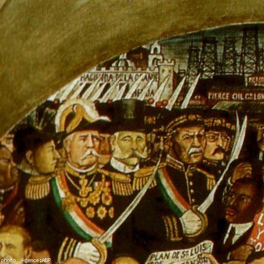 - José Limantour apparaissant (avec le haut-de-forme) sur le mural de Diego Rivera au palacio nacional de Mexico (Collection privée Philippe Argouarch).