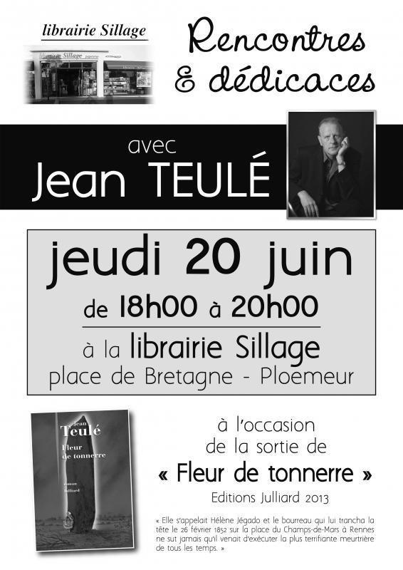 Rencontres & Dédicaces avec Jean TEULE à l'occasion de la sortie de "Fleur de tonnerre" Editions Julliard 2013 jeudi 20 juin de 18 à 20h00 librairie Sillage place de Bretagne 56270 Ploemeur