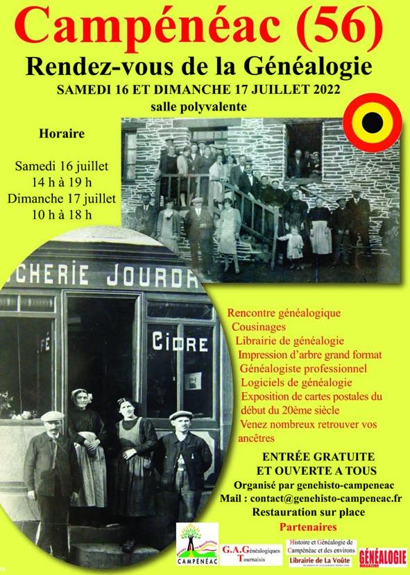 GénéaFrancoBelge sera l'invitée d'honneur de la quinzaine édition des Rendez-vous de la Généalogie qui se tiendra à Campénéac (56) les 16 & 17 juillet 2022 (en partenariat avec la Librairie de la Voûte et le site internet webgenealogie.com).