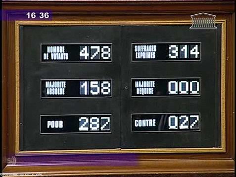 L'assemblée nationale a voté aujourd'hui la modification de l'article 11 de la Constitution, par 287 voix pour et 27 voix contre. Cette décision permettrait l'organisation d'un référendum d'initiative partagée, sur