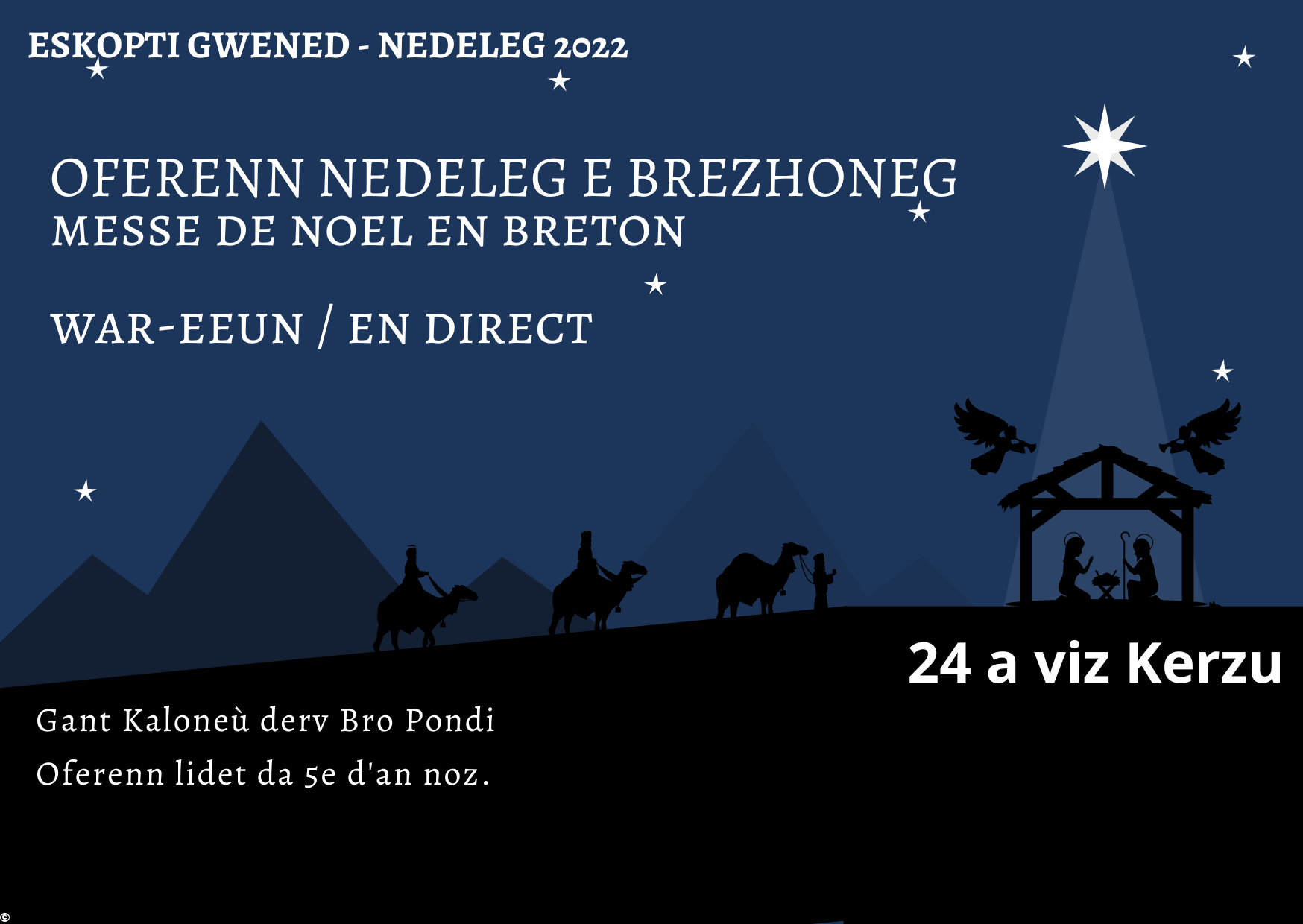 Lidet ‘zo bet oferenn Nandeleg e brezhoneg penn-da-benn ba’ penn-iliz Pondi, a-dalek 5e d’an noz d’ar 24 a viz kerzu.