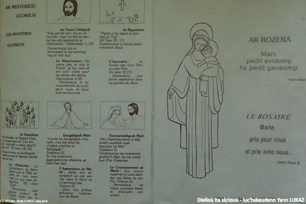 Ar Werc’hez-Vari a oar mat, muioc’h egedon c’hoazh an dra-se. Ra vezo benniget-hi, pe e galleg, pe e brezhoneg. Rak fiziañs en deus lakaet em c’halon - un devezh resis, en ur vro nann-europeat - evit mont en hent war-zu...ar brezhoneg, ar yezh ha ne oa ket bet treuzkaset din em bugaleaj. Setu perak e lâran, e brezhoneg : « Me ho salud Mari, leun ar c’hras… ».