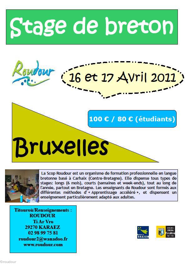 Au printemps 2011, Roudour, organisme de formation à la langue bretonne basé à Carhaix, organisera 3 stages de breton hors-Bretagne. Le premier aura lieu le temps d'un week-end, à Bruxelles et