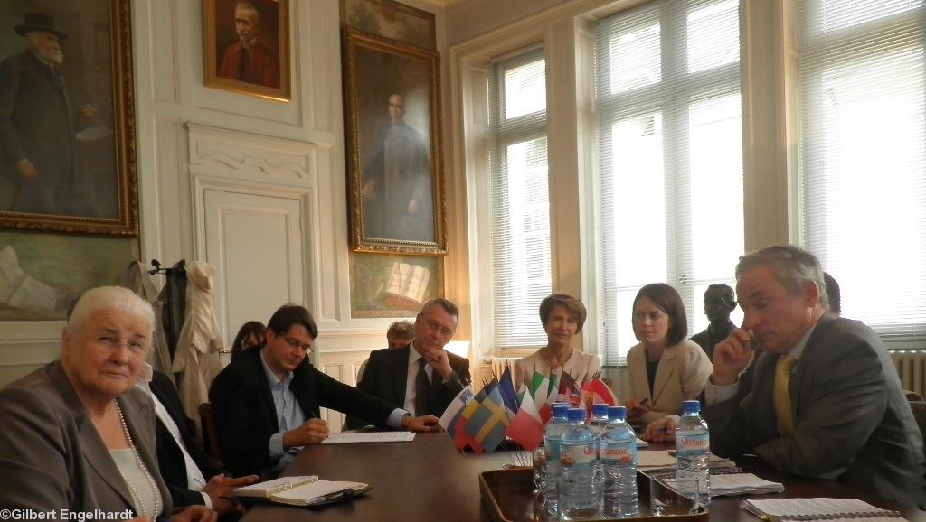 Richard Bruton, Irish minister of Enterprise, Employment and Innovation, came to Rennes to conduct a round-table conference which was organized in the Ouest France block (built in 1915-16) in Rennes downtown. The conference was organized by the House of Europe in Rennes, led by Jeanne-Françoise Hutin, the Ouest France newspaper chief executive's wife, and Enterprise Ireland.