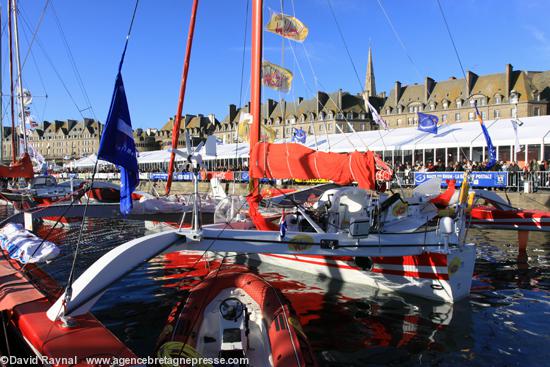 Derniers réglages, dernières consultations des fichiers météo en attentant le coup de canon libérateur de 13h02 au large de la pointe du Grouin à Cancale. Demain, les conditions devraient être favorables, avec un vent établi de force 3 et des chances de voir de belles éclaircies. En attendant, les skippers se jaugent et rêvent déjà de leur course idéale. « Je n'avais jamais pensé faire du solitaire sur ce type de bateau. Je ne viens pas reculons sur cette course mais c'est vrai que je ne me suis pas préparé comme les années précédentes. Pour la première fois, nous allons nous affronter les uns aux autres en classe Ultime et je crois que la météo peut véritablement dicter le résultat. Le portant dans la brise serait des conditions idéales. Il ne faut pas qu'il y ait du petit temps trop longtemps ».