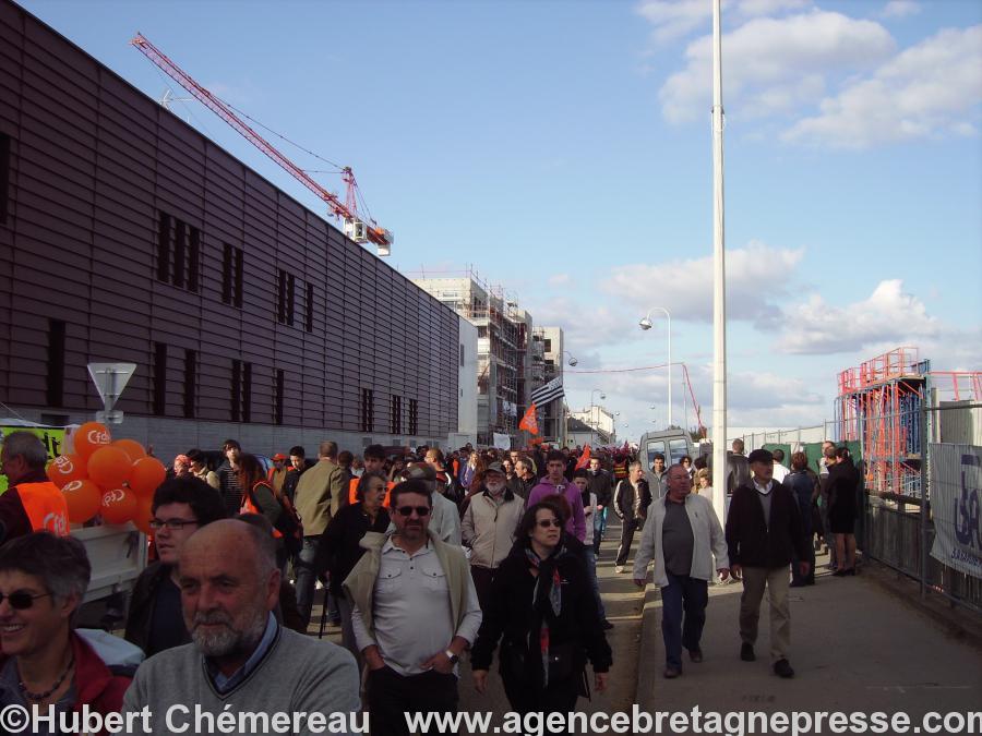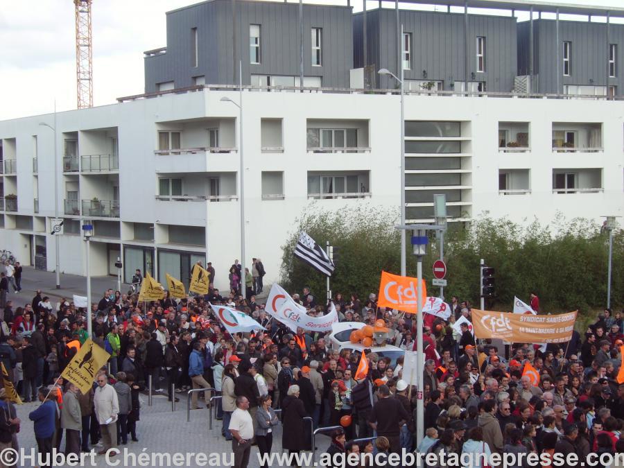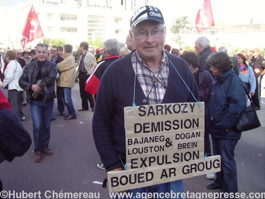 Des Gwenn ha Du et autres signes de bretonnité étaient visibles comme la pancarte anti Sarkozy de ce syndicaliste affichant du breton qu'ABP ne traduira pas...