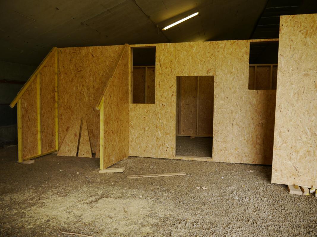 Des barrières seront fabriquées avec de vieilles palettes. Il faudra aussi amener du foin et le monter en meule ; prévoir des bûches pour faire des tas de bois ; découper des planches de façon irrégulière pour former les talus.