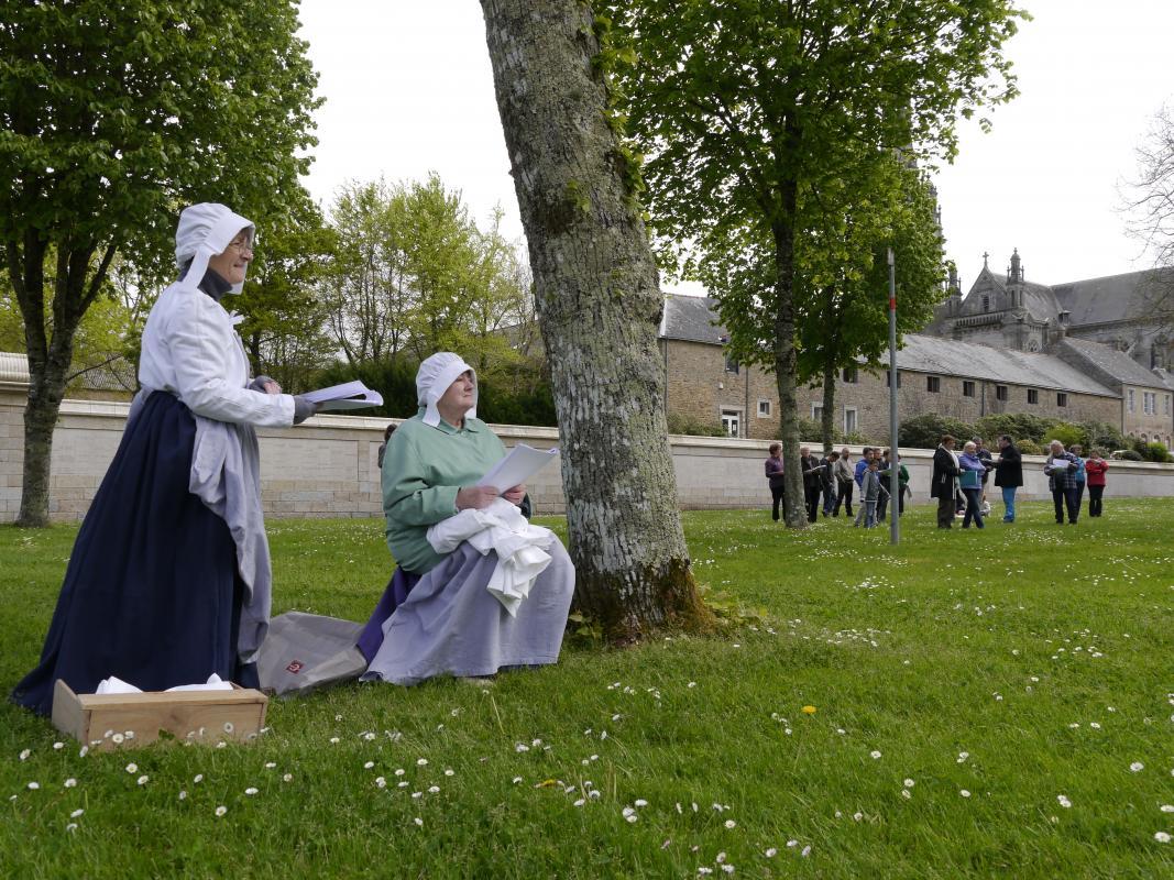 Autour de Dominique gravitent une douzaine de couturières, venant non seulement de Sainte-Anne d'Auray mais encore de communes voisines comme Plouharnel ou Carnac. Sur place, rue de la Fontaine, ce sont surtout les essayages et les finitions. Le plus gros se fait chez les unes et les autres au fil des semaines. Chaque costume est confectionné sur mesure et nécessite la mise en fiche précise de chaque comédien, de chaque figurant. Les deux premiers costumes ont déjà fait leur apparition lors de la répétition du spectacle samedi 11 mai devant le Mémorial, suscitant l'étonnement et l'admiration des pèlerins, très nombreux à l'occasion de ce weekend prolongé et ensoleillé.