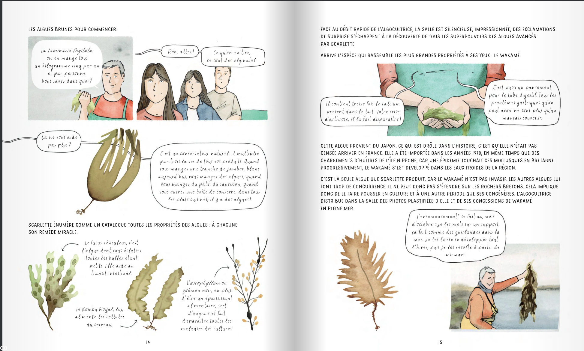 Sous la forme d’un carnet de bord, la bande dessinée retrace le parcours atypique et mouvementé de Scarlette Le Corre, de sa lutte pour s’imposer en tant que femme dans le milieu de la pêche et de son combat pour faire comprendre l'incroyable potentiel que représentent les algues qui foisonnent sur le littoral breton.