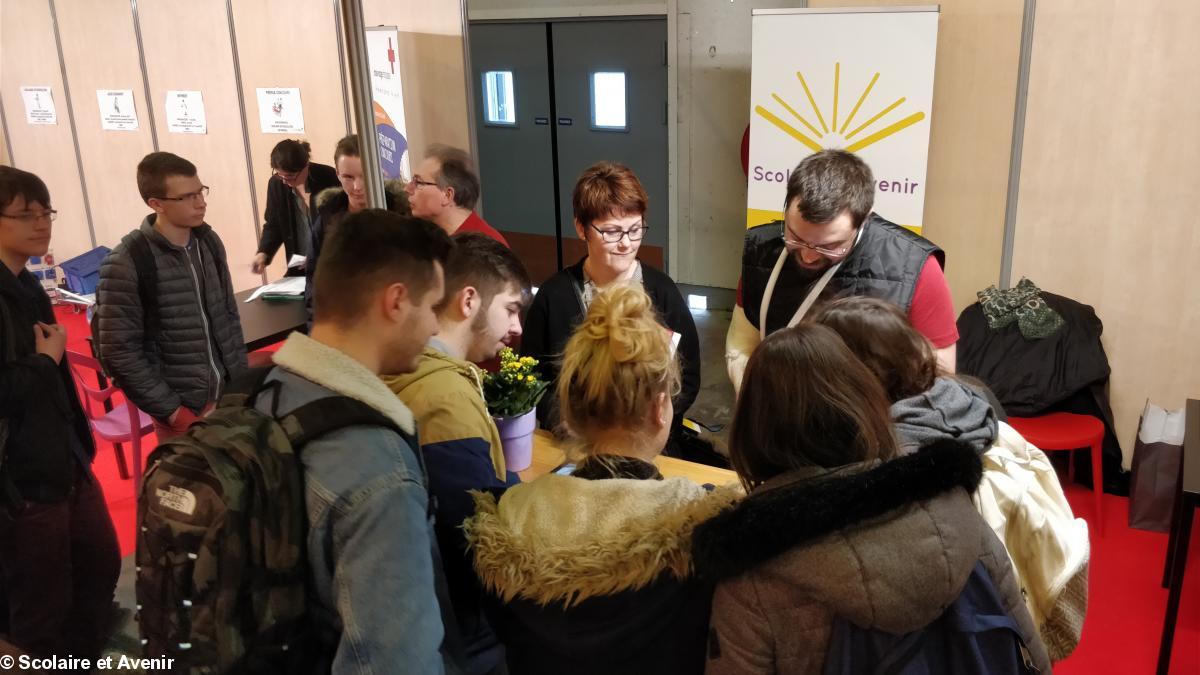 L'équipe de Scolaire et Avenir et Isabelle Jouneau lors du salon de l'orientation scolaire de l’Étudiant de Rennes de janvier 2018
