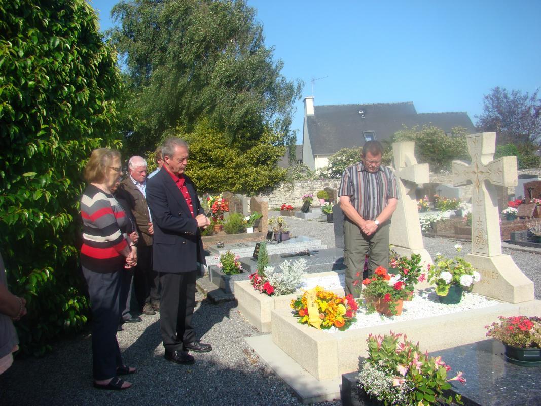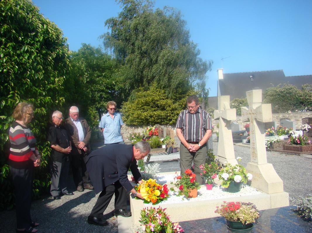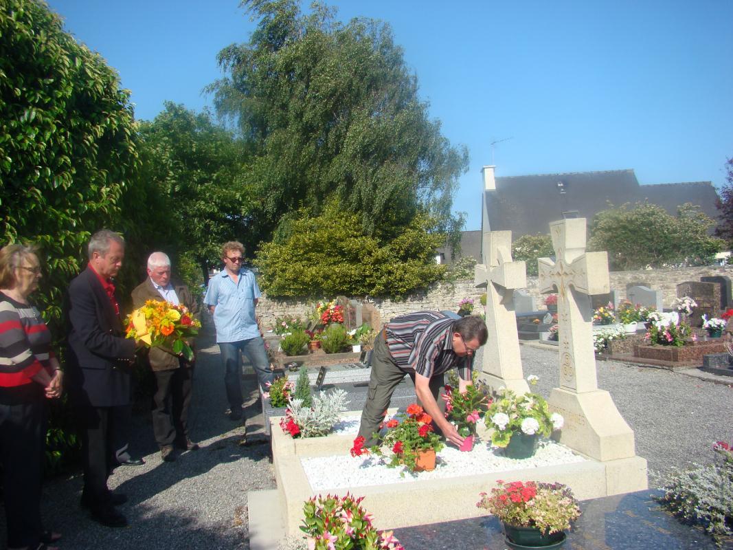 - Dominique Le Roux, président du comité de Jumelage de Plomelin pose un plant sur la tombe de Robert Omnès
