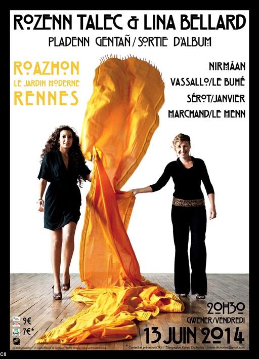 Le duo Rozenn Talec & Lina Bellard (Harpe & Voix) fêtera la sortie de leur premier album LEIZ AN DORN le Vendredi 13 Juin 2014 à RENNES au Jardin Moderne. Rozenn