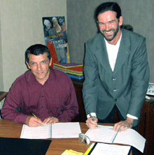 M. Jean-Eric Balnoas président de l'association Rando Bro Gwened a signé l'accord Ya d'ar brezhoneg jeudi 8 octobre 2009 au siège de la fédération Kendalc'h à Elven en présence de M. Visant Roue, responsable du pôle Étude et Développement.