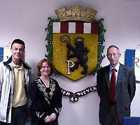 M. Christian Calvez, maire de Plouvien a signé la charte Ya d'ar brezhoneg en présence de Mme Lena Louarn, présidente de l'Office de la Langue Bretonne et des membres du Conseil municipal le samedi 24 novembre. La commune avait voté l'adhésion à la charte en mai 2007 en s'engageant pour le