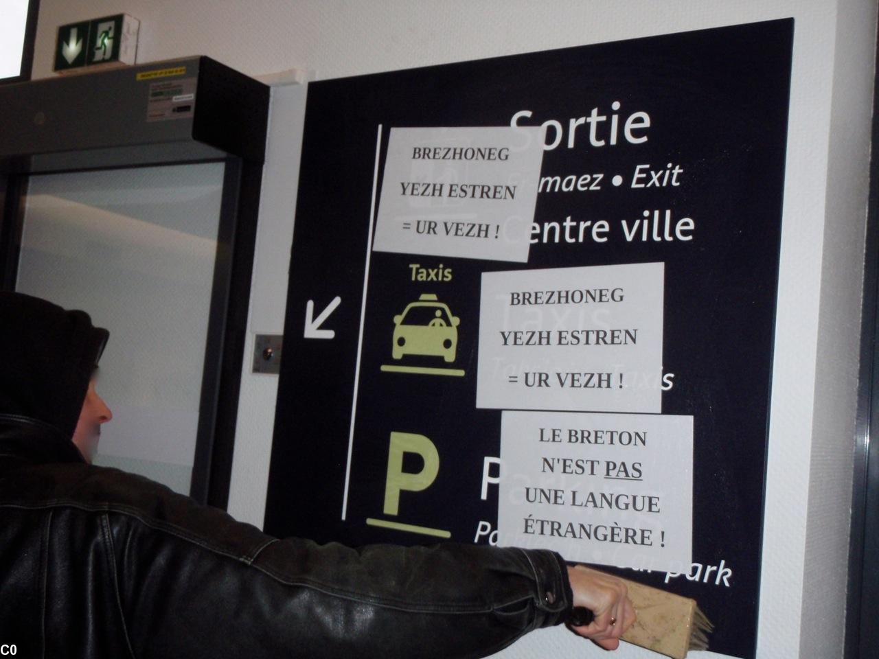 Le breton est ainsi relégué au rang de langue étrangère sur son propre territoire, alors même que des expériences de signalétiques paritaires breton français avaient été récemment mises en place dans certaines gares rénovées de Bretagne (gares TER de Montreuil-sur-Ille, Montauban de Bretagne et expérience menée dans la gare de Landerneau depuis 2008).